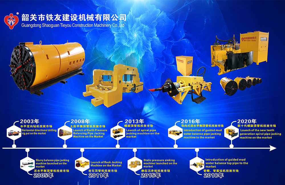 韶關(guān)市鐵友建設(shè)機(jī)械有限公司位于韶關(guān)市武江區(qū)科技工業(yè)園,占地建筑面積25000平方米,公司成立于2000年9月,是一家集研發(fā)、制造、銷售和服務(wù)于一體的高新科技企業(yè),是廣東省韶關(guān)市非開挖設(shè)備工程研究開發(fā)中心的依托單位,公司自成立以來一直注重于研發(fā)、智能化高新技術(shù)非開挖產(chǎn)品,公司于2003年通過了ISO9001;2001國際質(zhì)量體系認(rèn)證。國際非開挖協(xié)會(huì)會(huì)員、中國非開挖協(xié)會(huì)會(huì)員。國家級(jí)高新科技企業(yè)下設(shè)工程研究開發(fā)中心,前期參與過國家級(jí)863隧道盾構(gòu)機(jī)項(xiàng)目的科研工作,在對(duì)設(shè)計(jì)與制作積累了豐富的實(shí)踐經(jīng)驗(yàn)。多年來,一直以“市場(chǎng)需求為奮斗目標(biāo)”,不斷觀察市場(chǎng),不斷求新思變,成功完成了多項(xiàng)工程機(jī)械及關(guān)鍵技術(shù)、帶··· [MORE + ]